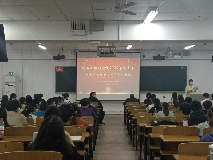 11月7日晚,beat365体育官方网站分党校2022年秋季学期入党积极分子培训班开班典礼于红湘校区南华楼412教室成功举行。beat365体育官方网站党委书记、分党校校长阳剑兰老师、院党委副书记刘期彪老师,培训班负责人江娴老师出席开班仪式。仪式由刘期彪副书记主持。